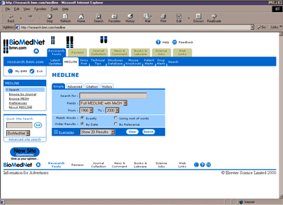 BioMedNet odlikuje bogat izbor dodatnih možnosti, poleg tega pa so pred kratkim prenovili vmesnik, ki je hitrejši in preglednejši. Zanimiva je predvsem integracija z nekaterimi bibliografskimi programi (EndNote, Papyrus, RefMan, ProCite, Bookends), ki omogoca izvoz zadetkov v dolocen format, po katerem lahko nato brskamo in išcemo off-line.