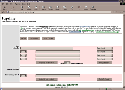 Jupsline je delo domacega avtorja (Interna klinika Trnovo). Gre za vmesnik, ki poizvedbe pošilja direktno na iskalnik Entrez (PubMed), zato so tudi možnosti iskanja enake kot pri Entrez PubMed sistemu. Rezultati poizvedbe se prikažejo v samem Jupsline (lahko jih tudi kombiniramo), za ogled povzetkov in ostalih možnosti pa je direktna povezava na Entrez PubMed.